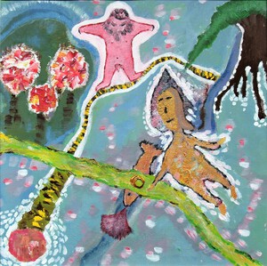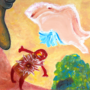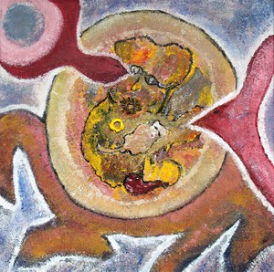 Acrylschilderijen, te zien geweest op de expositie 'Ontmaskering : wie ben je zonder masker'.