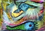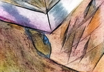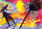 Oliekrijttekeningen, te zien geweest op de expositie in de Adventskerk te Assen.